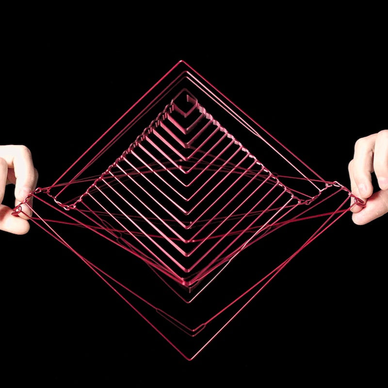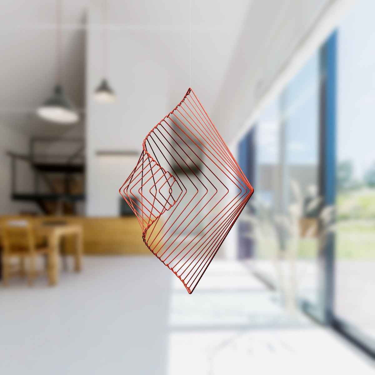 Square Wave is made of high quality chrome plated steel and is perfect for both indoor and outdoor usage (yes, you can hang it in your garden or patio). Square wave is a unique piece of kinetic design inspired by the Fibonacci sequence, the basic structure that is the makeup of every living thing. Just spin it to get surprised by a series of mind-bending optical illusions, and unexpected hypnotizing revolutions.