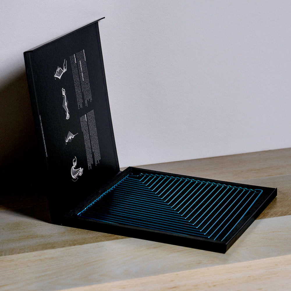 Everything matters, including the packaging! Square Wave is made of steel and is treated for both indoor and outdoor environments. You can hang it from the old oak tree in the garden or use it as a wind chime by the porch, Square Wave is made to last. Dimensions are: 9,8 x 9,8 in (25 x 25 cm). You can admire it In a statuesque standing position, or hang it from the ceiling as a revolving sculpture. You can also hang it above your child’s crib to use as a mobile, its tranquil ballet of soft feather-like motions could put even the most energetic of babies to sleep. Either way, Square Wave is a rare example of true uniqueness and the perfect gift for person that already has everything.