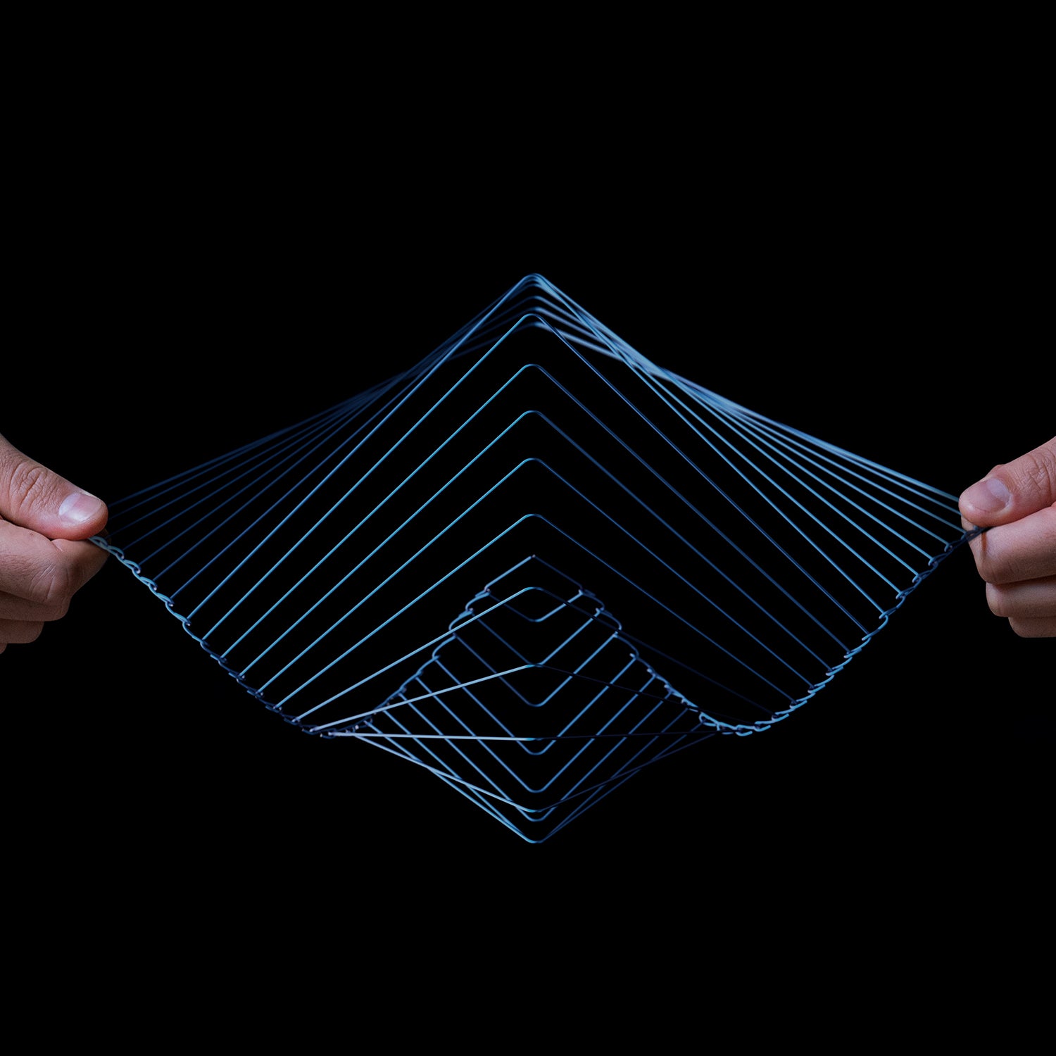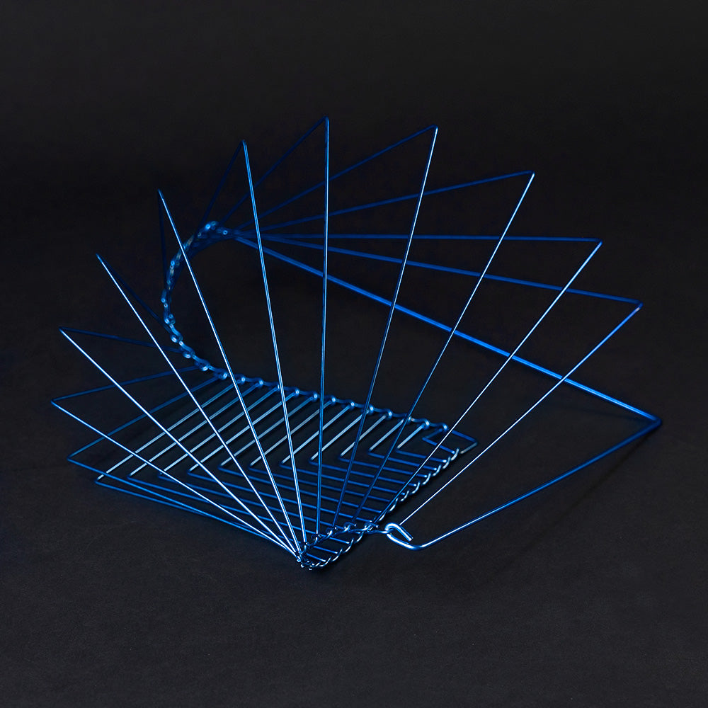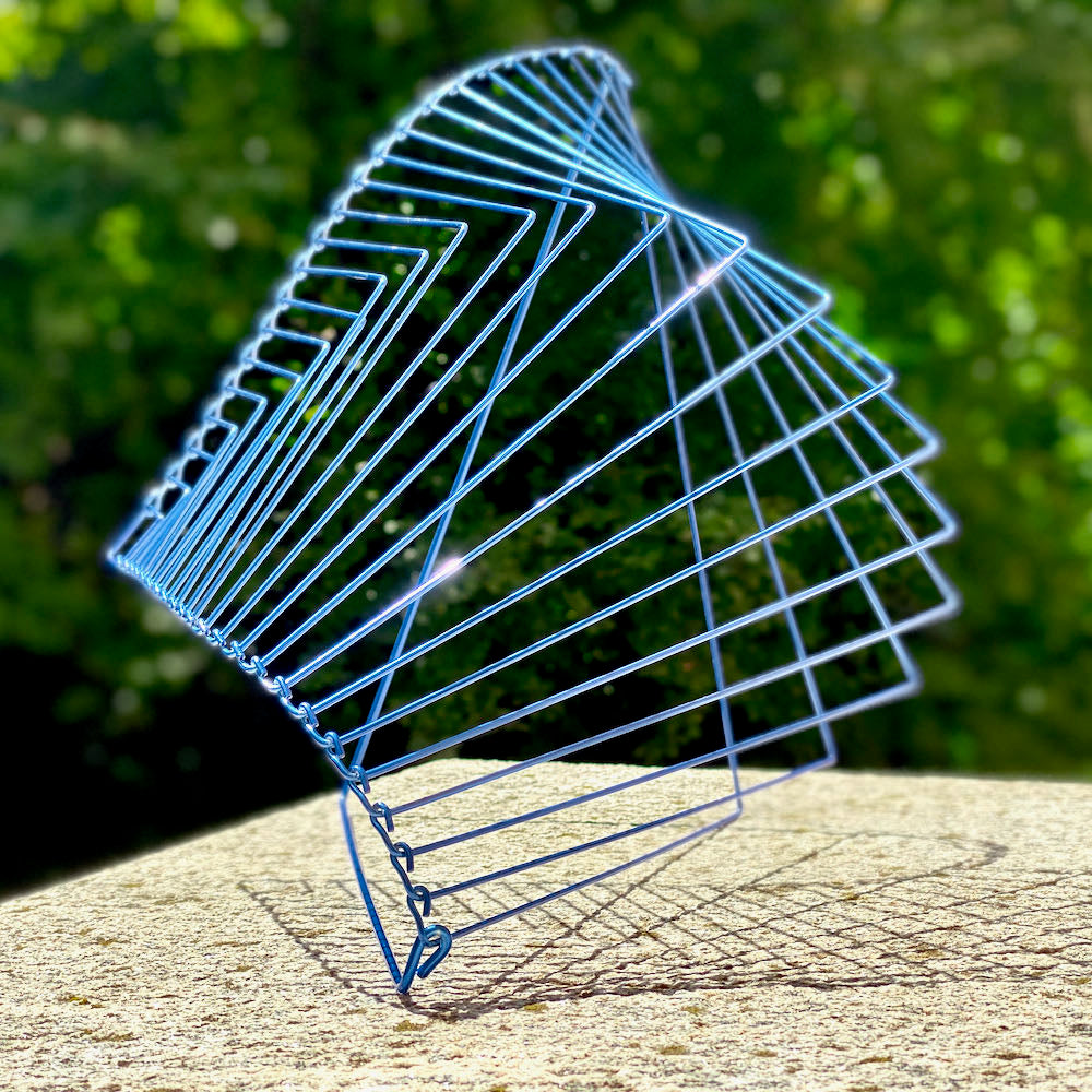 Square Wave is made up of 24 carefully intertwined metal rods which curve and warp at their own whim. One simple twist of a hand can bring the structure to life. The repetition of these rods is precisely calibrated to create complex fluid motion, nature does the exact same in the bone structures of every living thing. Each and every Square Wave is crafted and assembled by hand, each metal rod connected to the next by hand. The attention to detail and craftsmanship in each Square Wave elevates it to a work of art.